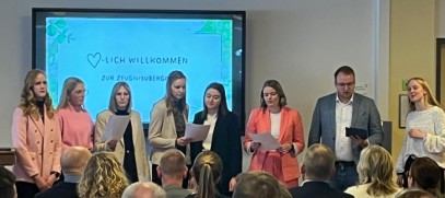 Nach der Rede der Seminarrektorin Frau Dünhöft mit einzelnen Beiträgen der Pädagogikseminarleitungen, sorgten die Teilnehmerinnen der Zusatzqualifikation Musisch-Kulturelle Bildung für einen Gänsehautmoment. Unter der Leitung von Frau Hirosawa-Blum sangen sie das Lied „Menschen“ von Max Giesinger.
