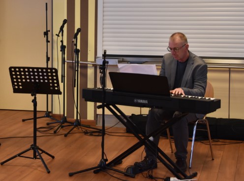 Ein Moment, der für ein erstes gemeinsames Innehalten sorgte, war die Bildpräsentation der Absolventinnen und Absolventen. Diese wurde spontan und gekonnt von Herrn Straukamp am Klavier begleitet.
