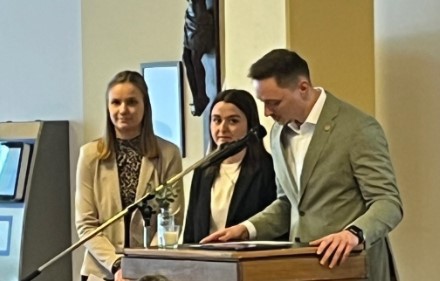 Die Rede der Auszubildenden selbst stellte den gemeinsamen Weg der Anwärterinnen und Anwärter während des Vorbereitungsdienstes und das Zusammenwachsen als Gruppe in den Mittelpunkt – vom einzelnen Individuum zu Beginn des Weges über erlebte Kollegialität in den Seminaren und Schulen und bis hin zu entstandenen Freundschaften. Besonders betont wurde dieses tragende Unterstützungsnetzwerk aus Seminar, Schule und vor allem auch privatem Umfeld. Ergänzt wurde der Beitrag durch eine lebendige Bildpräsentation, die nicht nur Erinnerungen weckte, sondern auch bislang ungeahnte Fähigkeiten einzelner Beteiligter offenbarte.